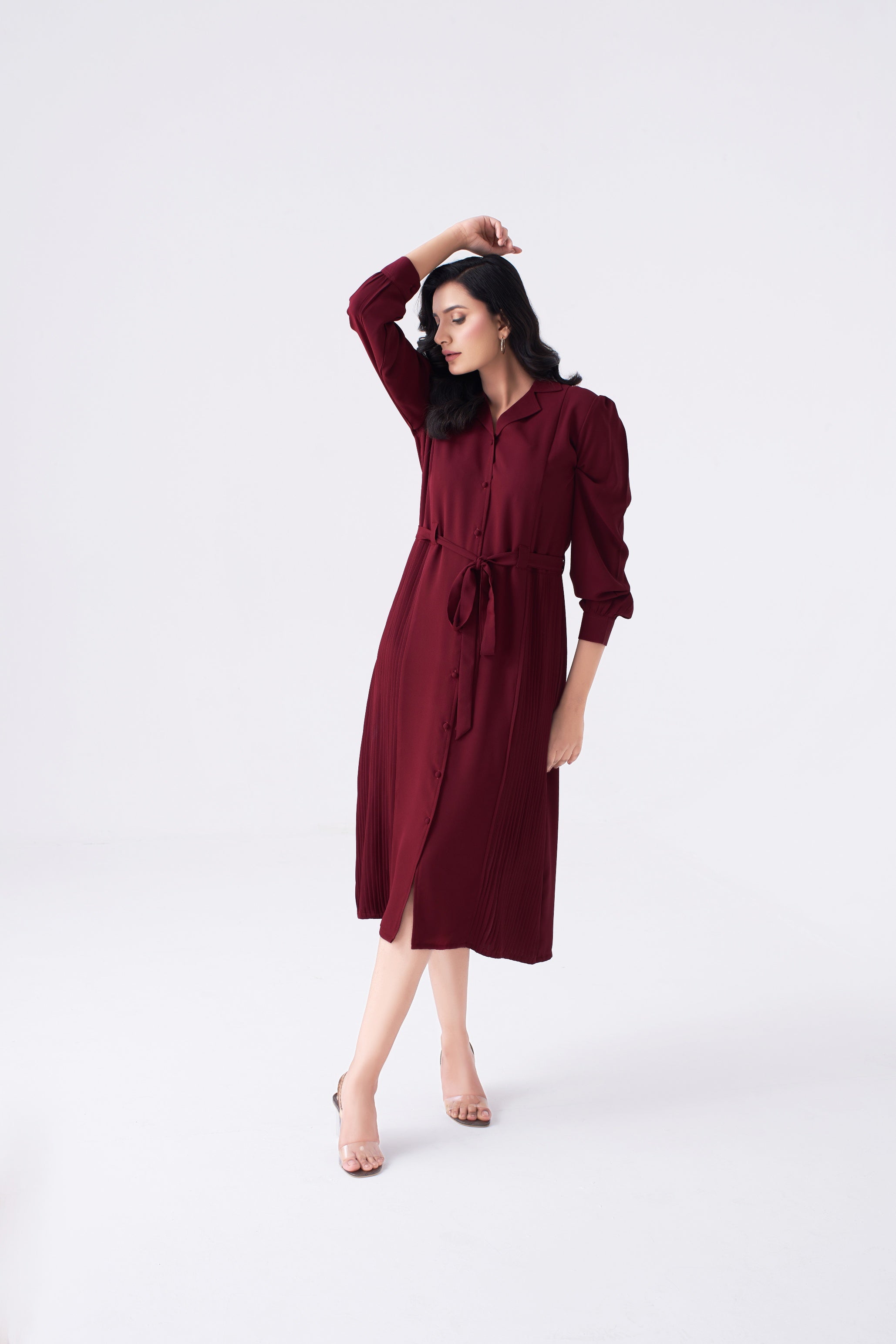 • Price mentioned includes one piece button down pleated dress with matching tie knot belt.